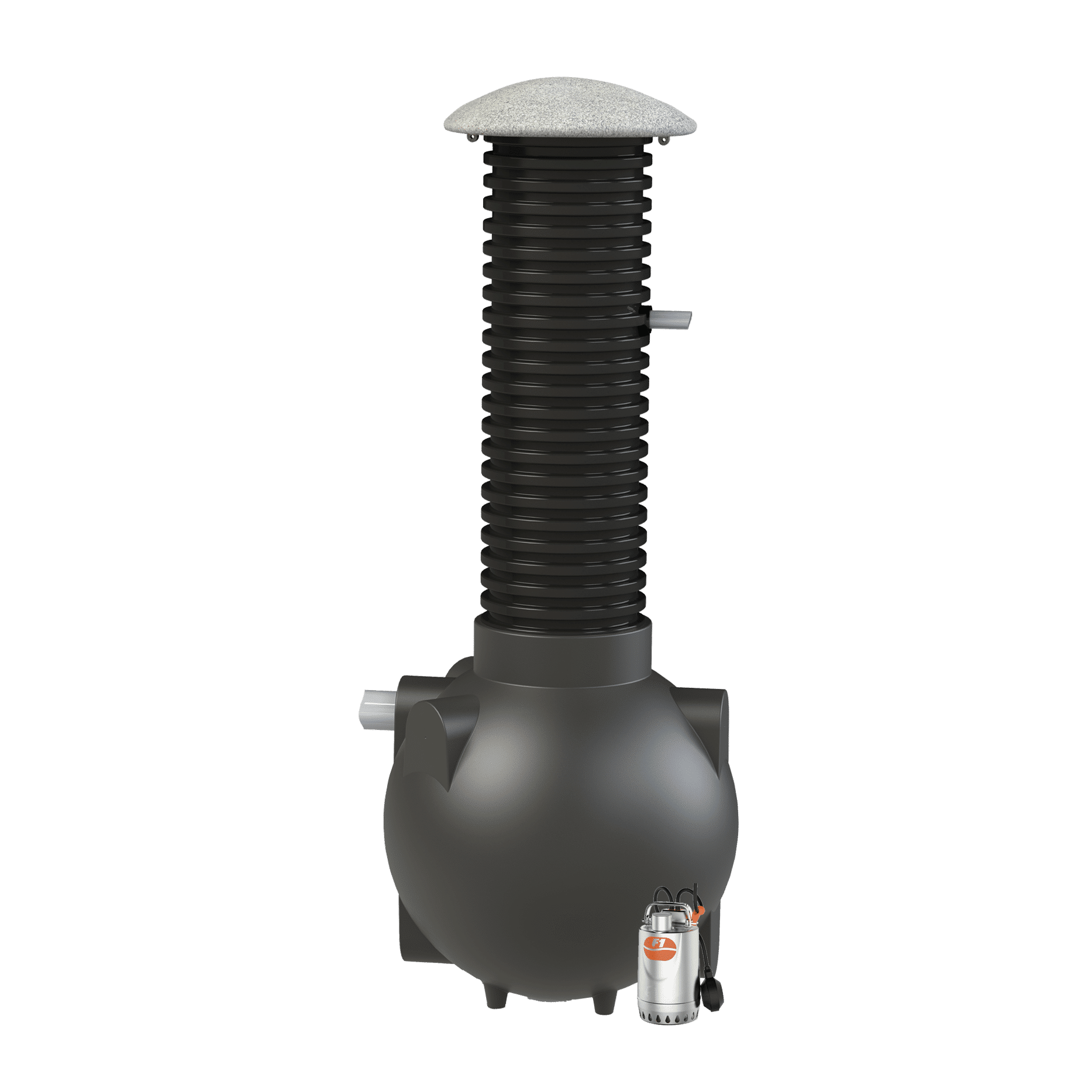 400L vastaanottotilavuudella ja 40mm paineputkilähdöllä varustettu pumppukaivo soveltuu käytettäväksi saostettujen ja harmaiden vesien pumppaamiseen mm.