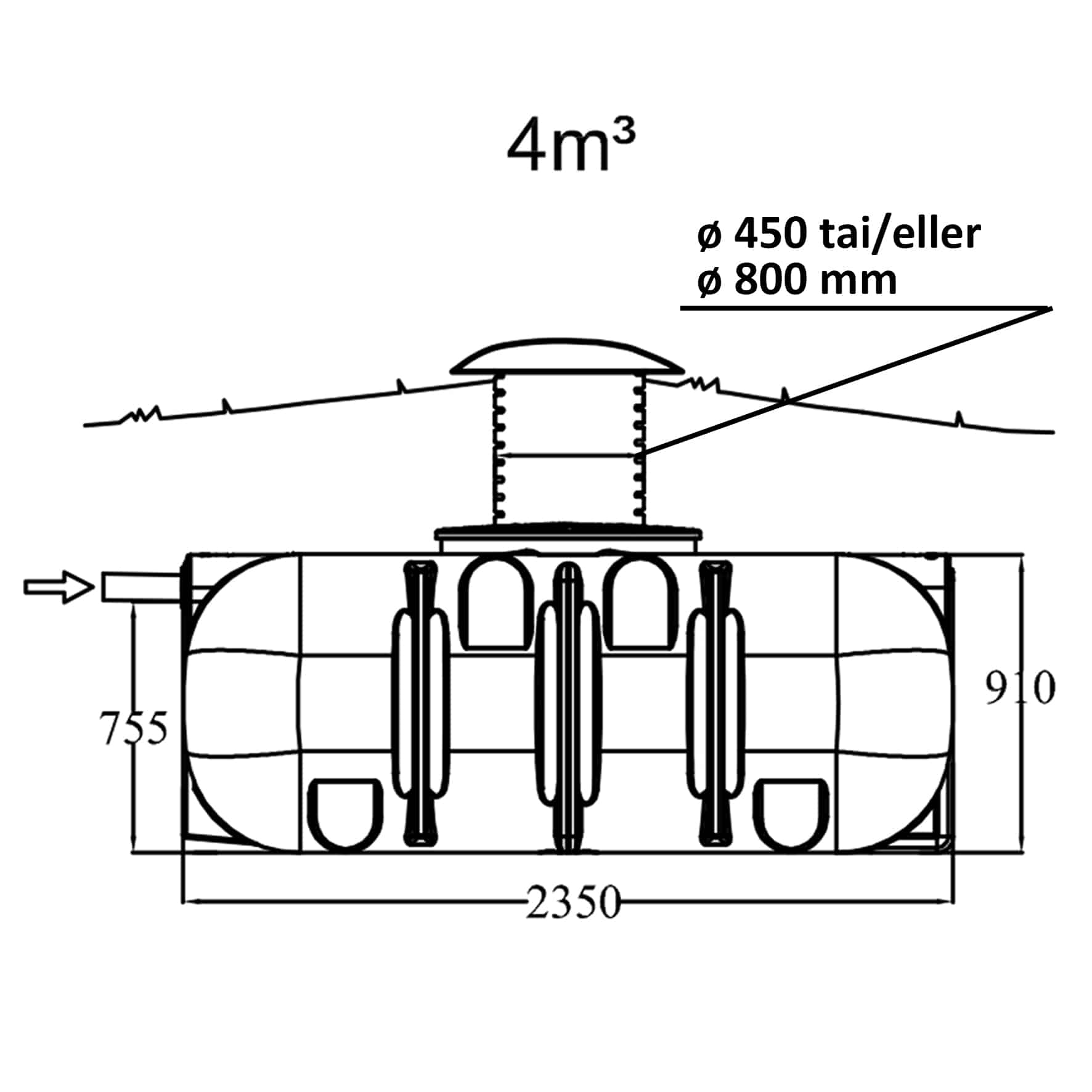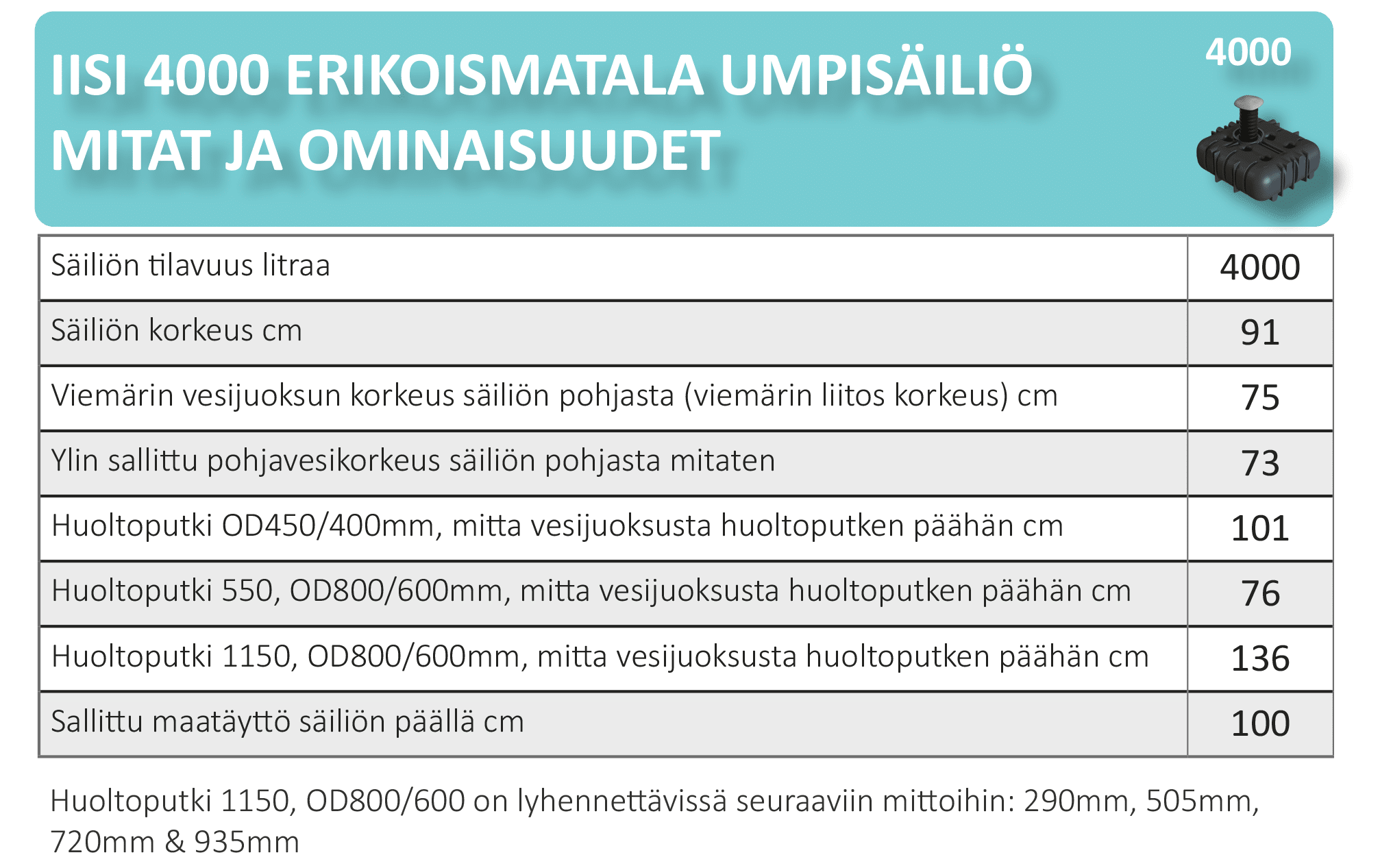 | 36263674 | IISI Umpisäiliö 4000L / OD800, 550 huoltoputki ja kansi, h=760 |
