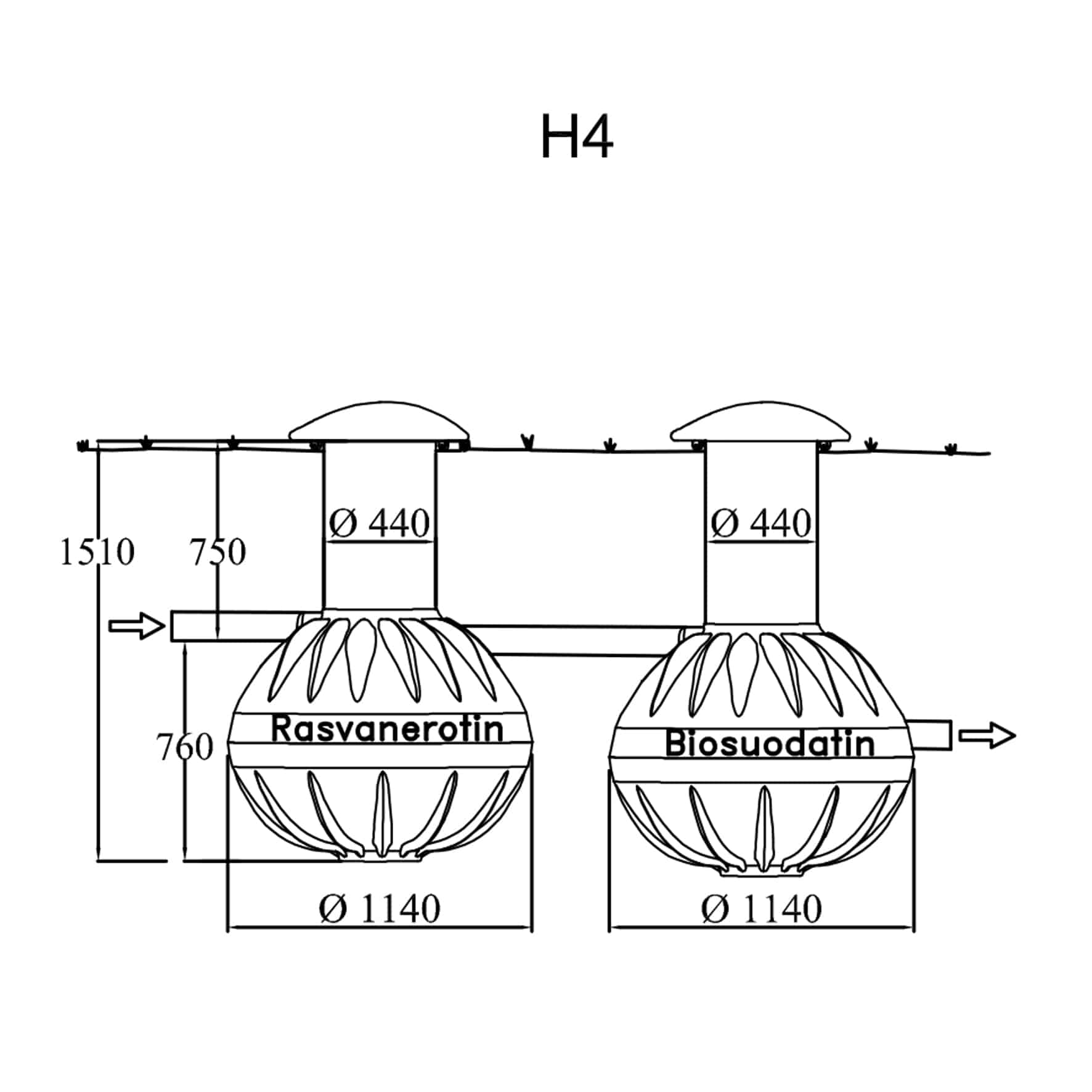 IISI H4 Harmaavesisuodatin puhdistaa tehokkaasti 500 L pesuvesiä vuorokaudessa. Se soveltuu hyvin varustetun vapaa-ajanasunnon pesuvesien puhdistukseen.