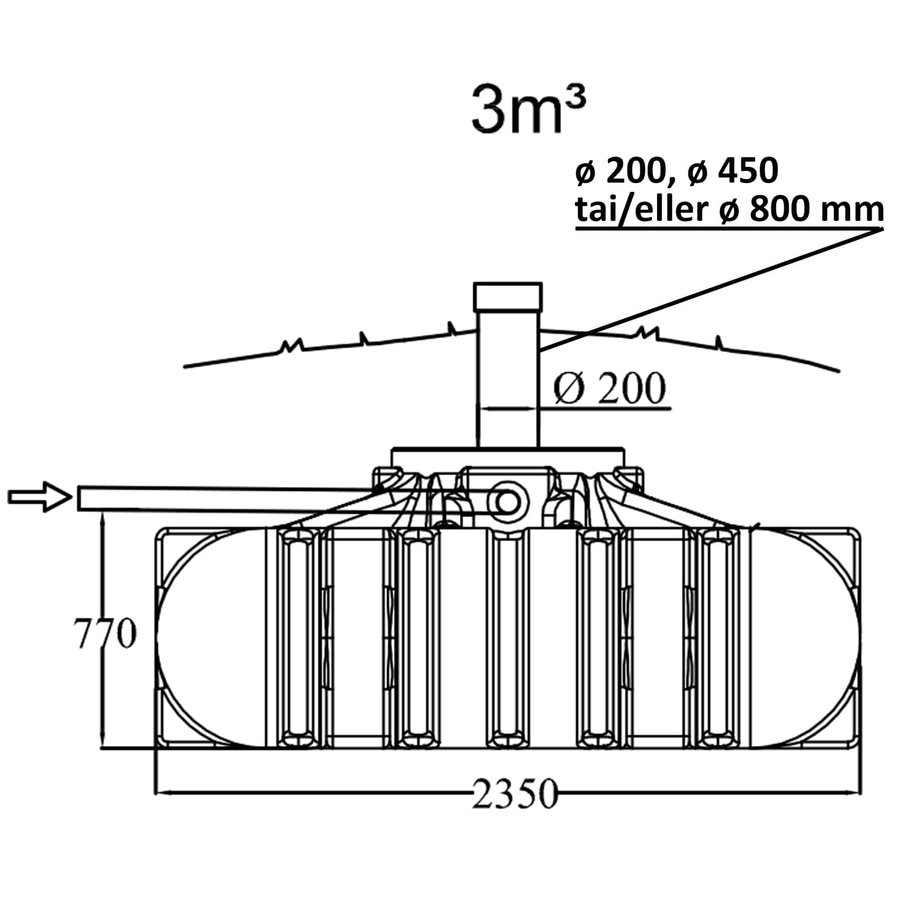 - kolme huoltoputki-vaihtoehtoa, 200 mm sekä suuret huoltoputket 450 ja 800 mm